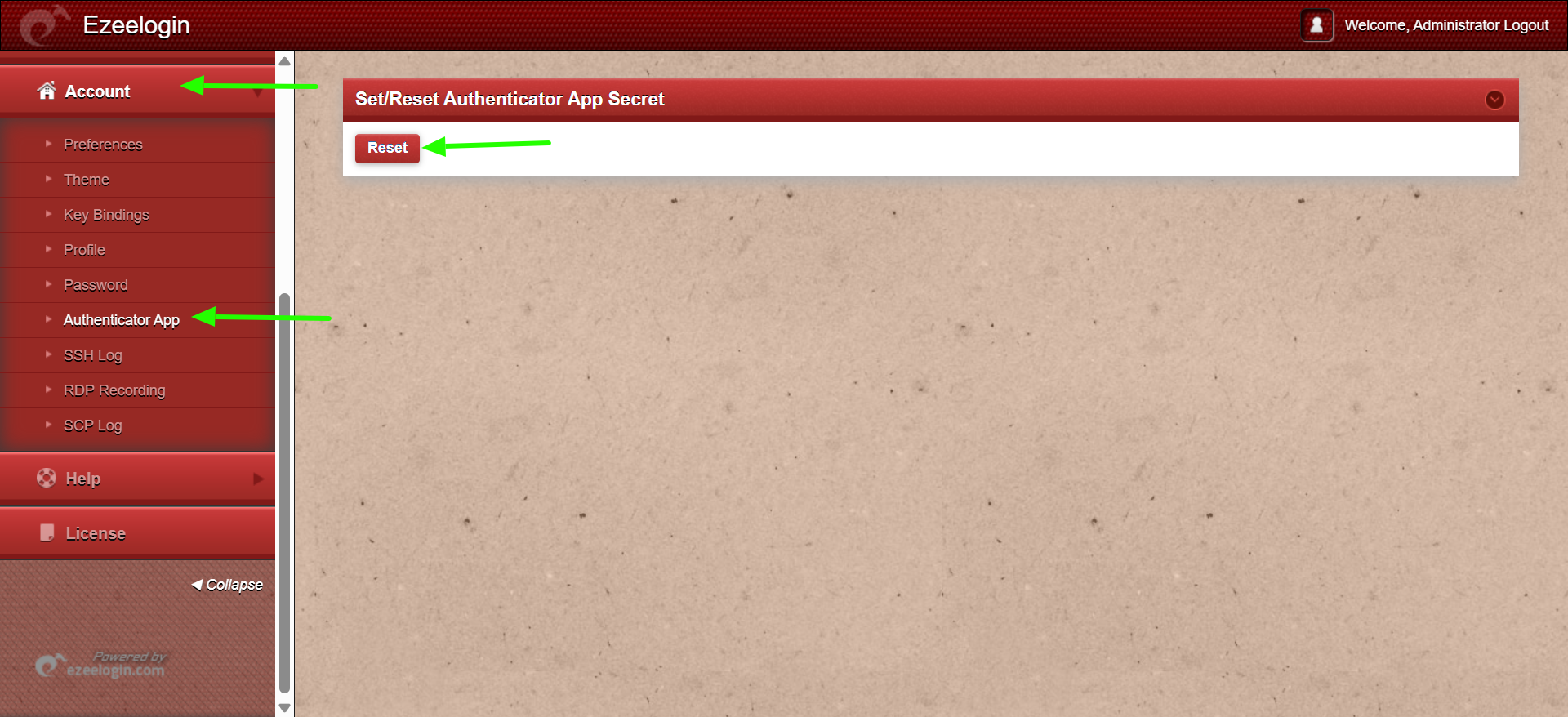 Step 3. To reset , you can do it by Account-> Authenticator App-> Reset. Click on the reset button and the QR code would be visible.