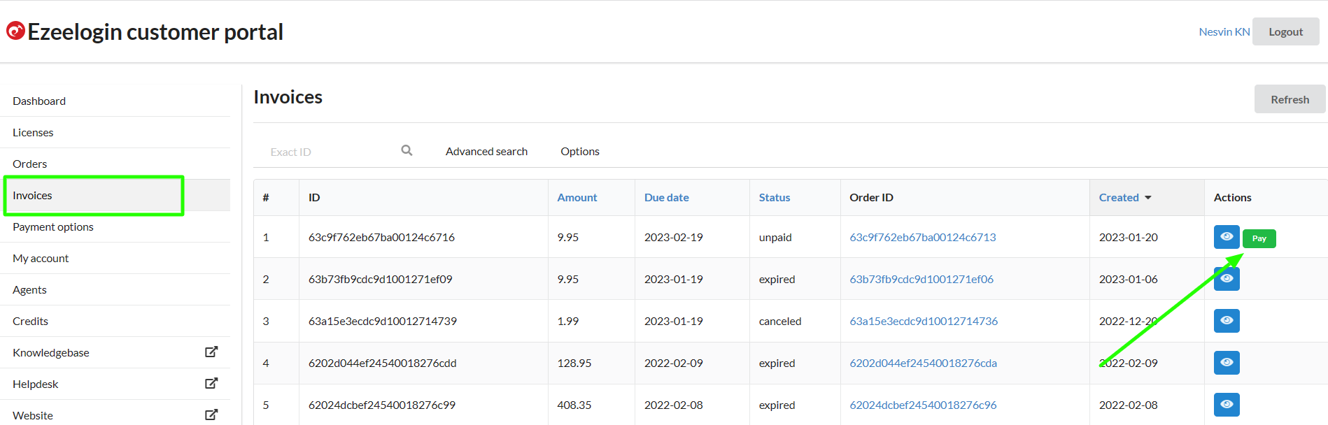 Overview: This article provides a step-by-step guide for users to pay an expired invoice from the new billing portal to reactivate the expired license.