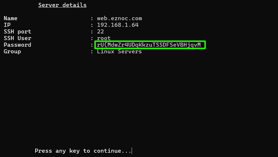 Step 2(A): To view password from backend(ezsh), ssh into the jump server, select the server whose password needs to be viewed, and press the tab key.