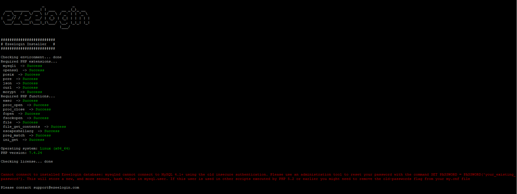 Step 2. Rest your MySQL superuser and Ezeelogin database user password if it uses the old password hash and run the upgrade command again.