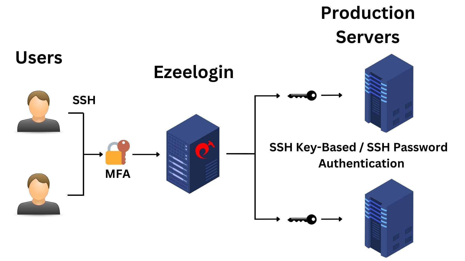 - It is recommended to use key-based authentication for remote servers accessed through Ezeelogin.