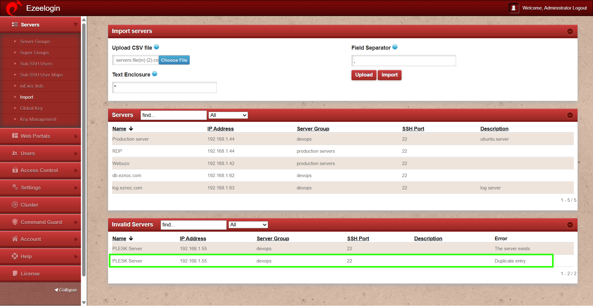 How to solve ’Server Already Exists’ and ’Duplicate Entry’ errors while importing servers?