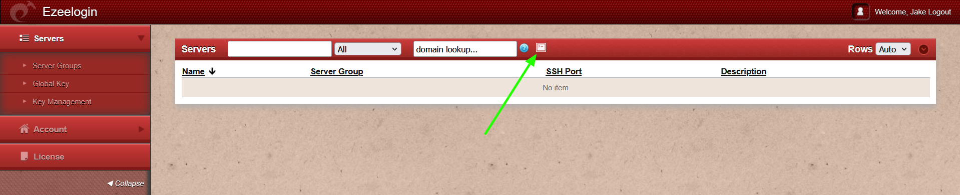 Step 18: After logging into ezsh, the server list will be visible. The user can navigate using the Up and Down arrow keys and login to a server by pressing the Enter key.