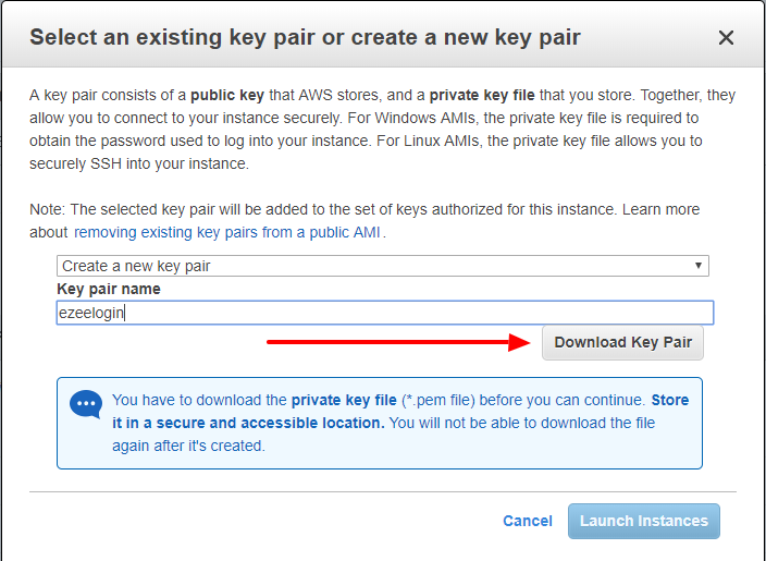 Step 1(A): During the creation of your Amazon EC2 instance, ensure to download the private key. You can download the key while creating an Amazon instance as shown in the below figure.