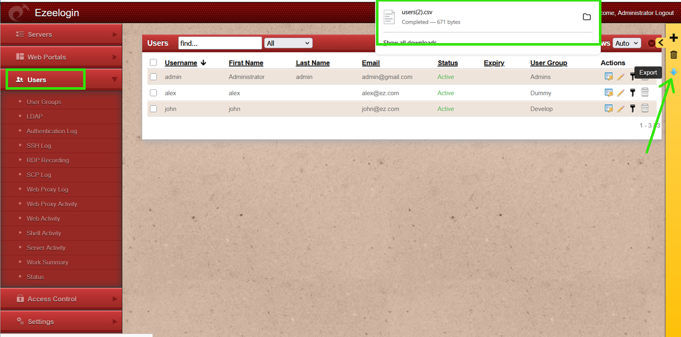 Overview: This article guides you through exporting the user list from the Ezeelogin GUI, including all relevant details, into a .csv file for convenient reference and reporting.