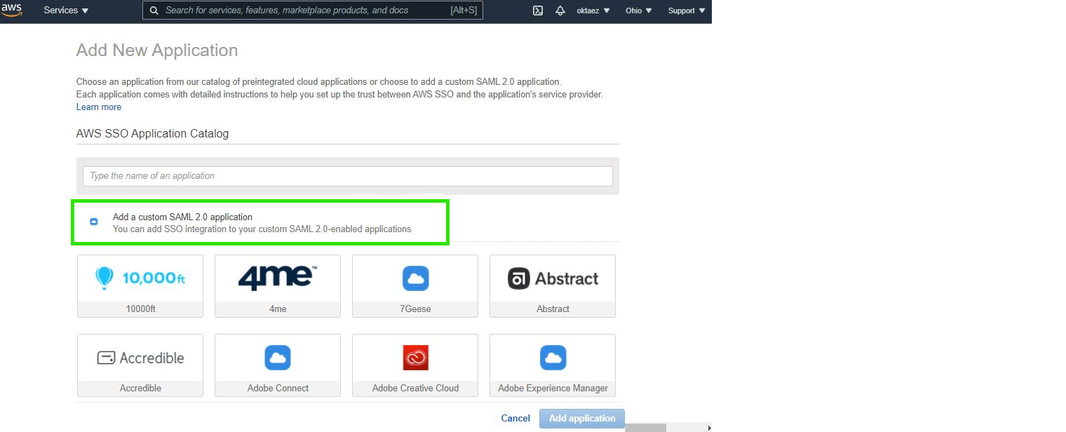 Step 1: Login to AWS console > select AWS Single Sign-On and click on Applications
