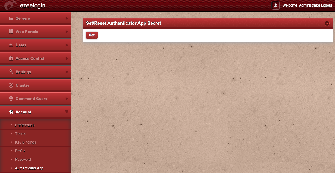 This option would be visible only if the 2fa mechanism is enabled under settings. In the example below, we are using the Google totp based authenticator application. Use the set/reset button to remove the Google secret keys stored and set a new one and to start using Google Authenticator codes for two- factor authentication. This can also be done using the Reset password but this would reset all the 2FA mechanisms.